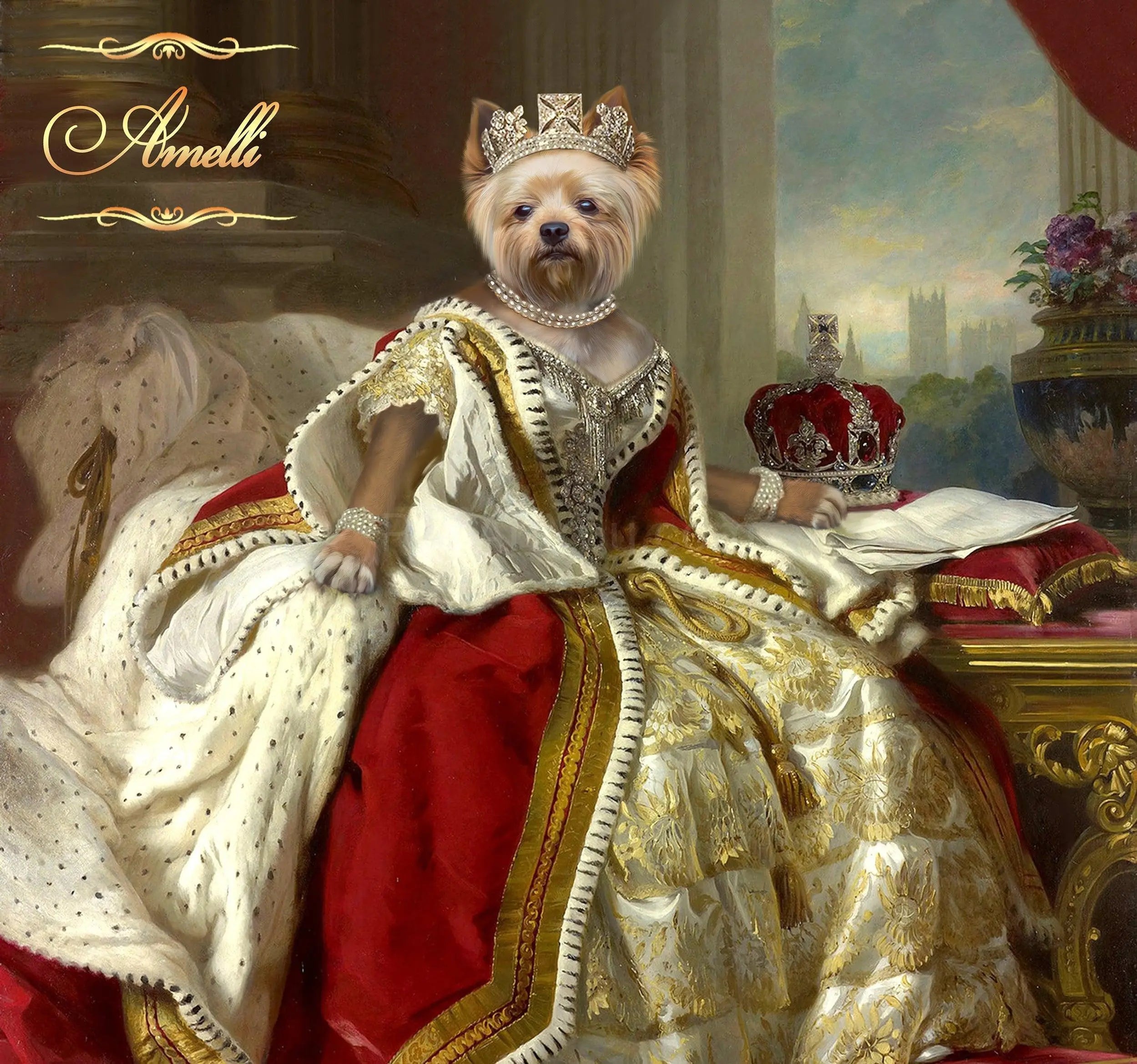 A great mother's day surprise idea is a hilarious pet portrait. A stylized image will cheer you up on the most cloudy day. You can choose a solid look like in the Royal pets section