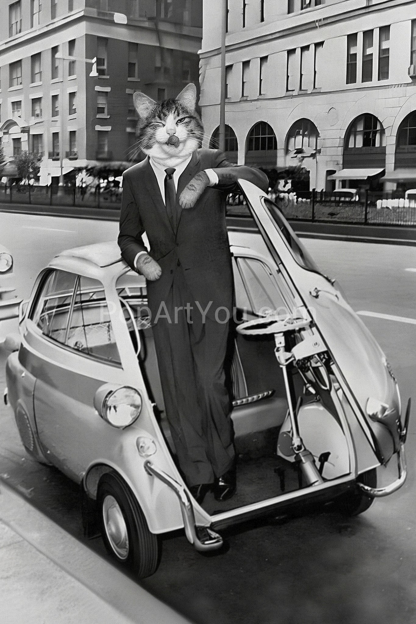 • Load image into Gallery viewer, A Three-Wheeled Car black and white pet portrait - PopArtYouShop