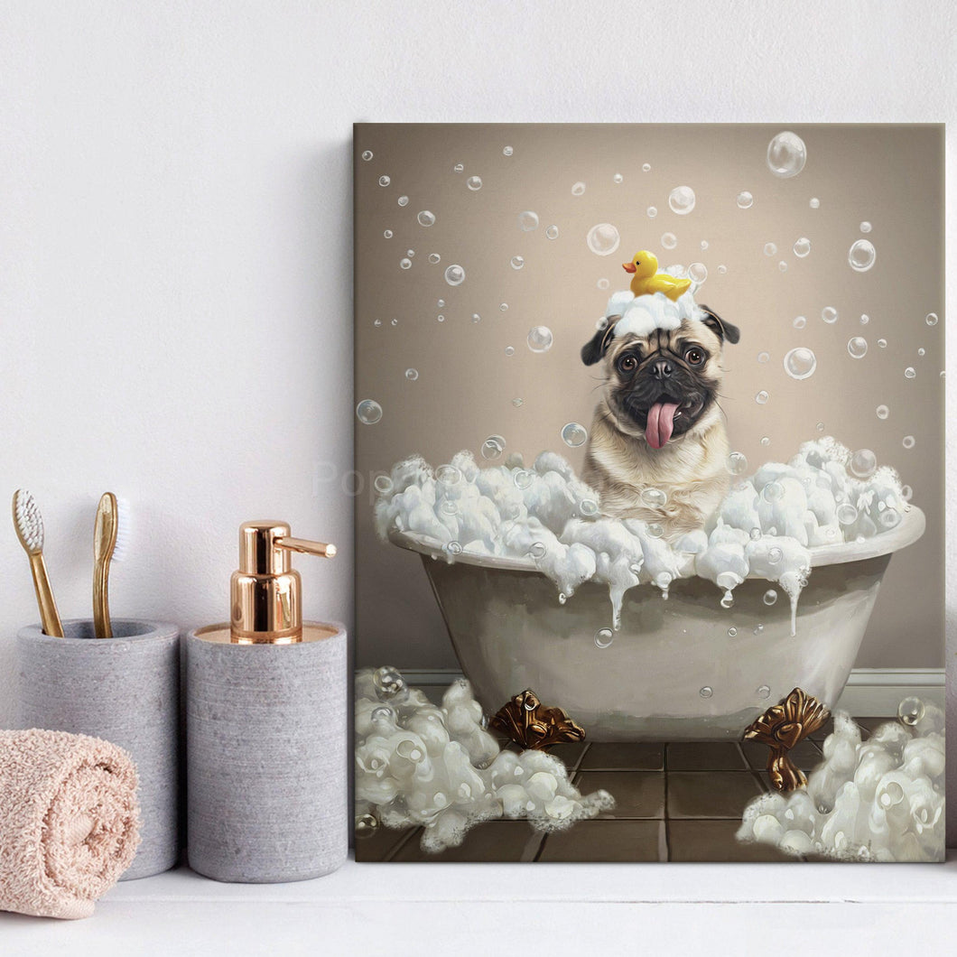 We offer custom-made dogs in bathtub wall art from your photos. We convert pet photos to a custom dog bathtub portrait. Our pets art captures your pet’s personality in the most creative sense. Dog bath art is a truly unique gift that is a joy to give as well as receive.