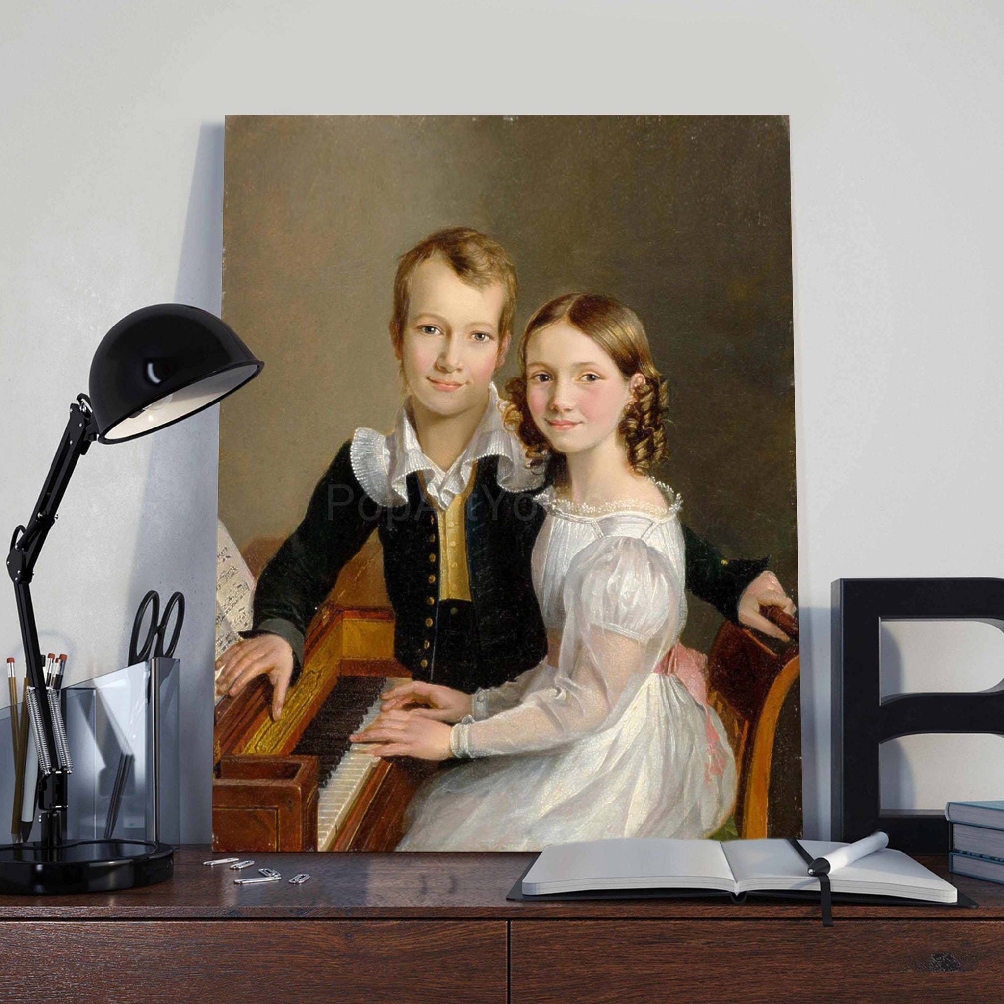 Brother and sister at the piano personalized portrait of children PopArtYou