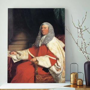 • Load image into Gallery viewer, The portrait depicts a man with long gray hair dressed in red regal attire