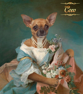 We offer custom-made female Pet portrait. We convert pet photos to a portrait of pets dressed in historical attire. Our pets art captures your pet’s personality in the most creative sense. A truly unique gift that is a joy to give as well as receive.