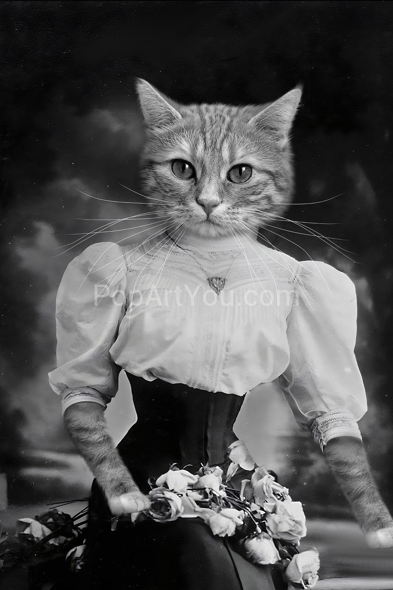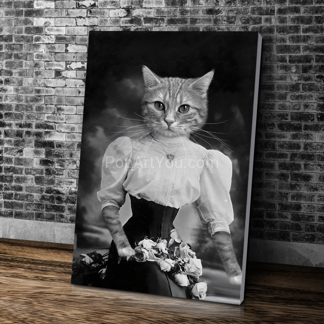 Lady in a corset with flowers black and white pet portrait - PopArtYouShop
