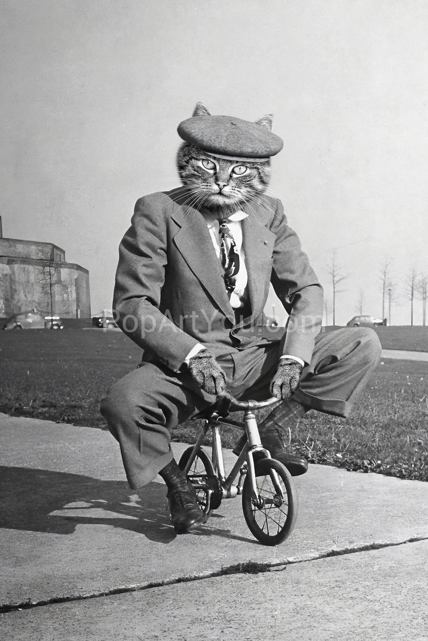 • Load image into Gallery viewer, On a small bike retro pet portrait