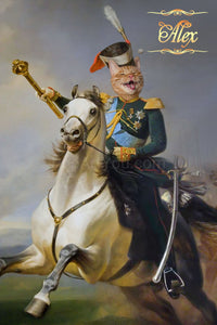 We offer custom-made cat leader on horse Portraits of your photos. We convert pet photos to a portrait of pets dressed in historic attire. Our pets art captures your pet’s personality in the most creative sense. A truly unique gift that is a joy to give as well as receive.