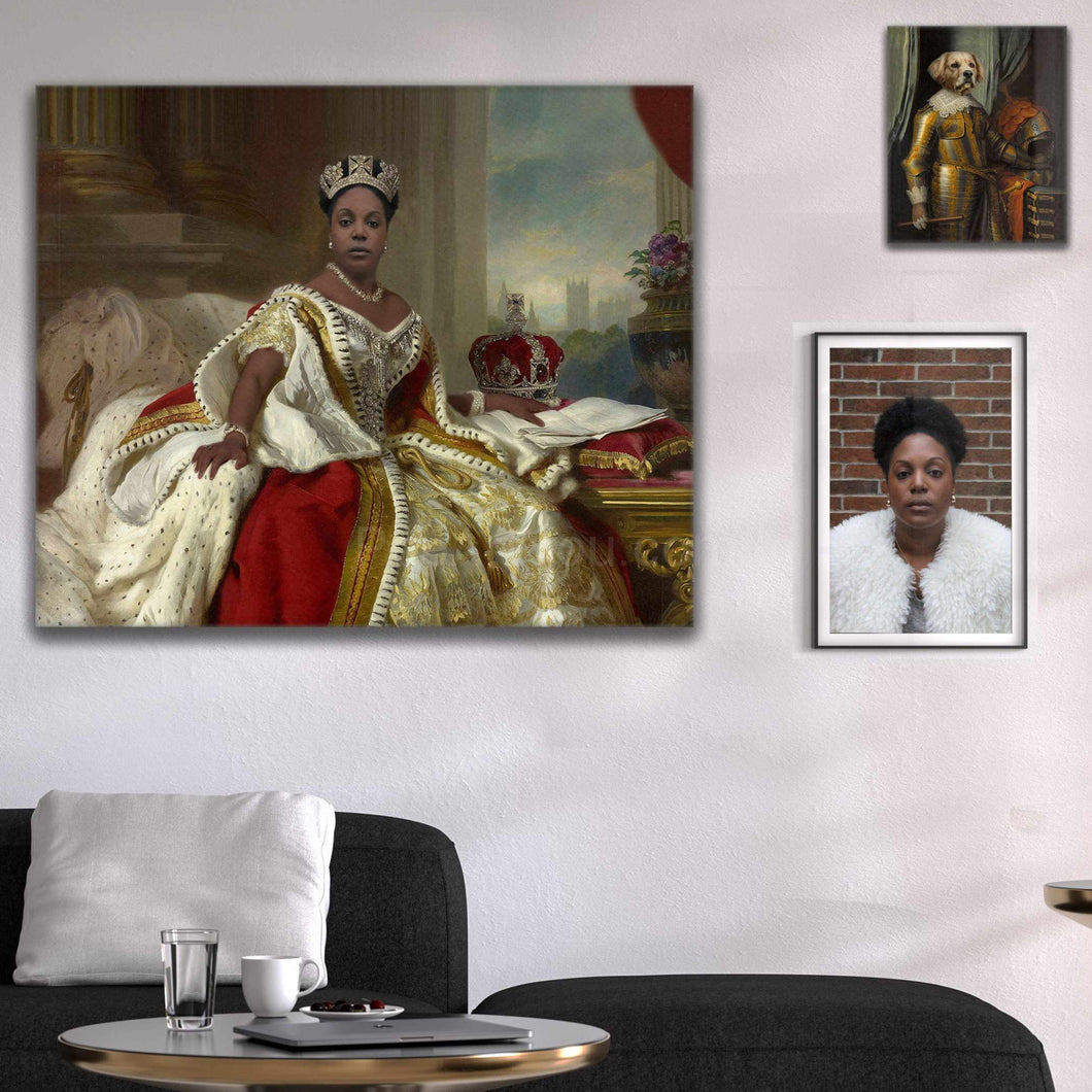 • Load image into Gallery viewer, The portrait shows a woman wearing a red royal attire with a crown