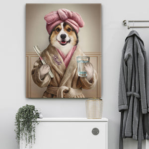 We offer custom-made spa animal bathroom prints from your photos. We transform pet photos into dog bathroom decor - portraits of pets in a robe. Our pets art captures your pet’s personality in the most creative sense. Bathroom portraits are a truly unique gift that is a joy to give as well as receive.